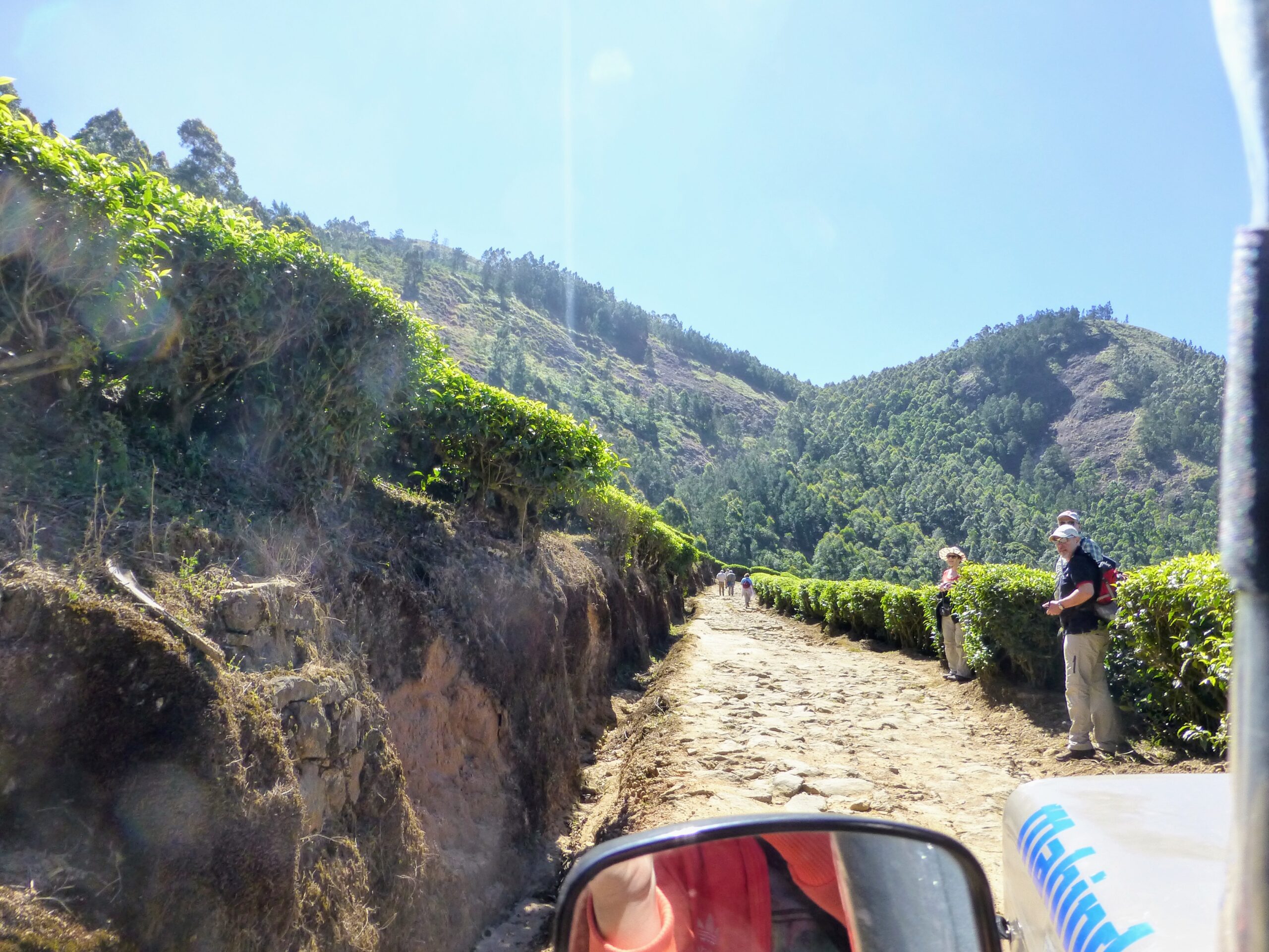 What you get in return on the way up: views that make you forget you nearly flew off your seat. The tea plantations stretch out below you. The occasional other jeep, tourists on foot, a motorbike. It is a touristy spot, and understandably so.