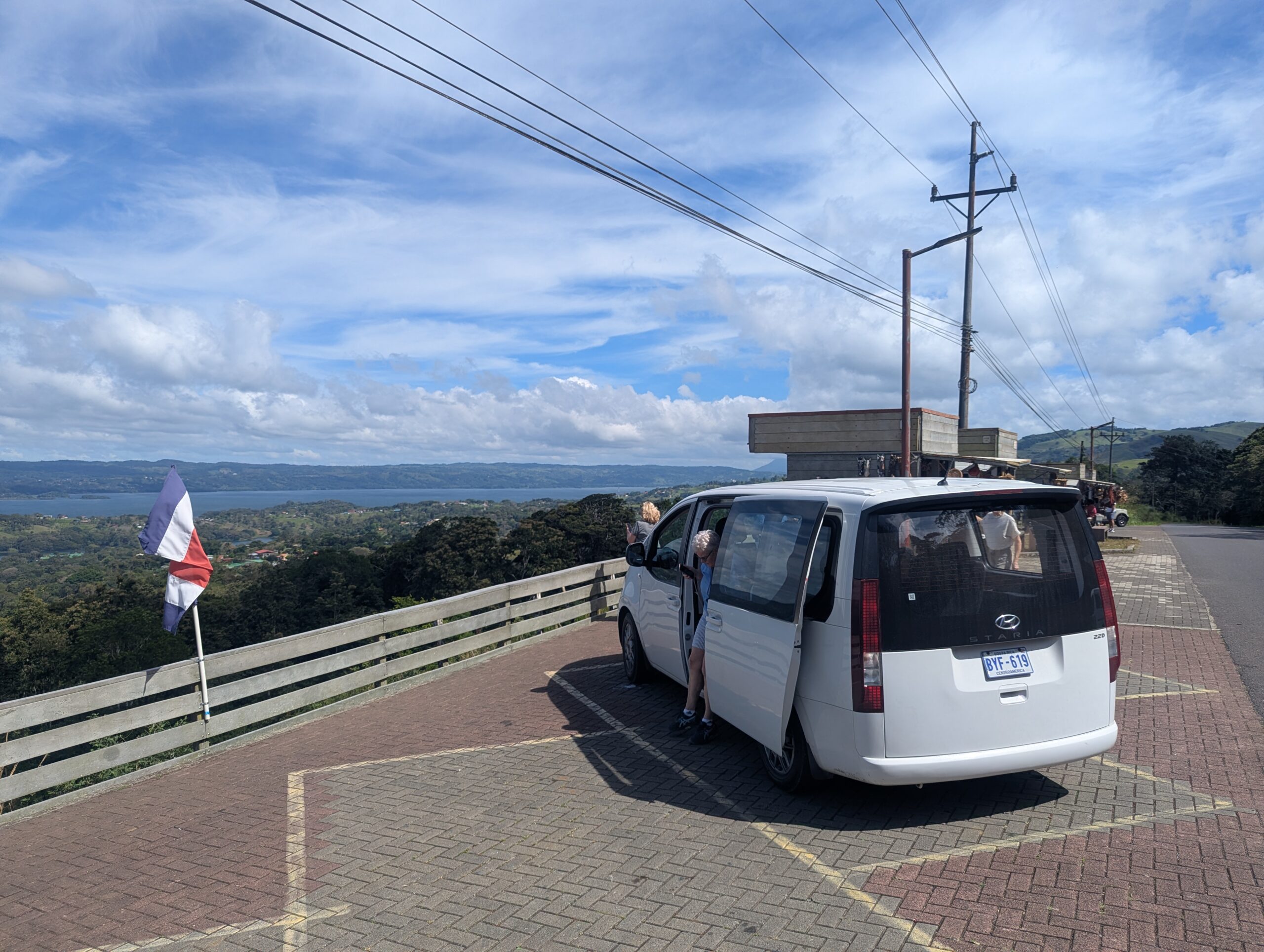 Further on during our drive along the lake, we stopped at the beautiful Mirador Tilaran (GPS). A wonderful break at a viewpoint with spectacular panorama over the lake and the Arenal volcano. Here you can also buy some souvenirs and have a cup of coffee or a small snack.